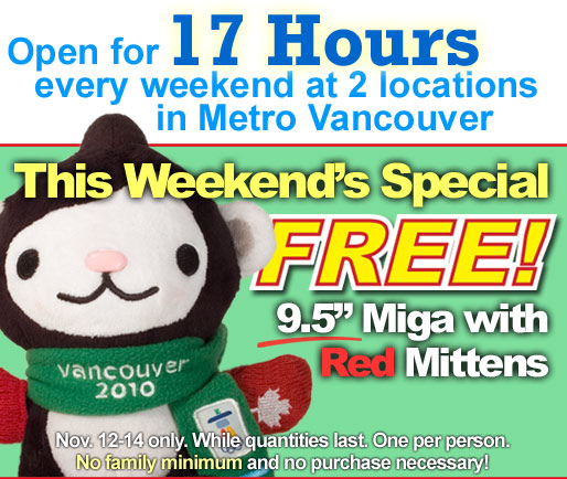 Free Miga Plushies, Nov 12-14 (Lower Mainland Only)